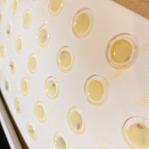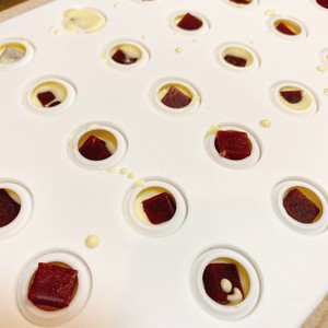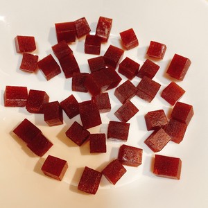 6、模具里倒入一層巧克力液,再放入切好的山楂糕。